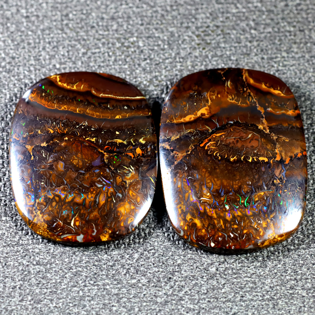 104.76 ct RARE!(2pcs)Lovely MATCHING PAIR Cabochon(36.75 x 27.48 mm)Boulder Opal