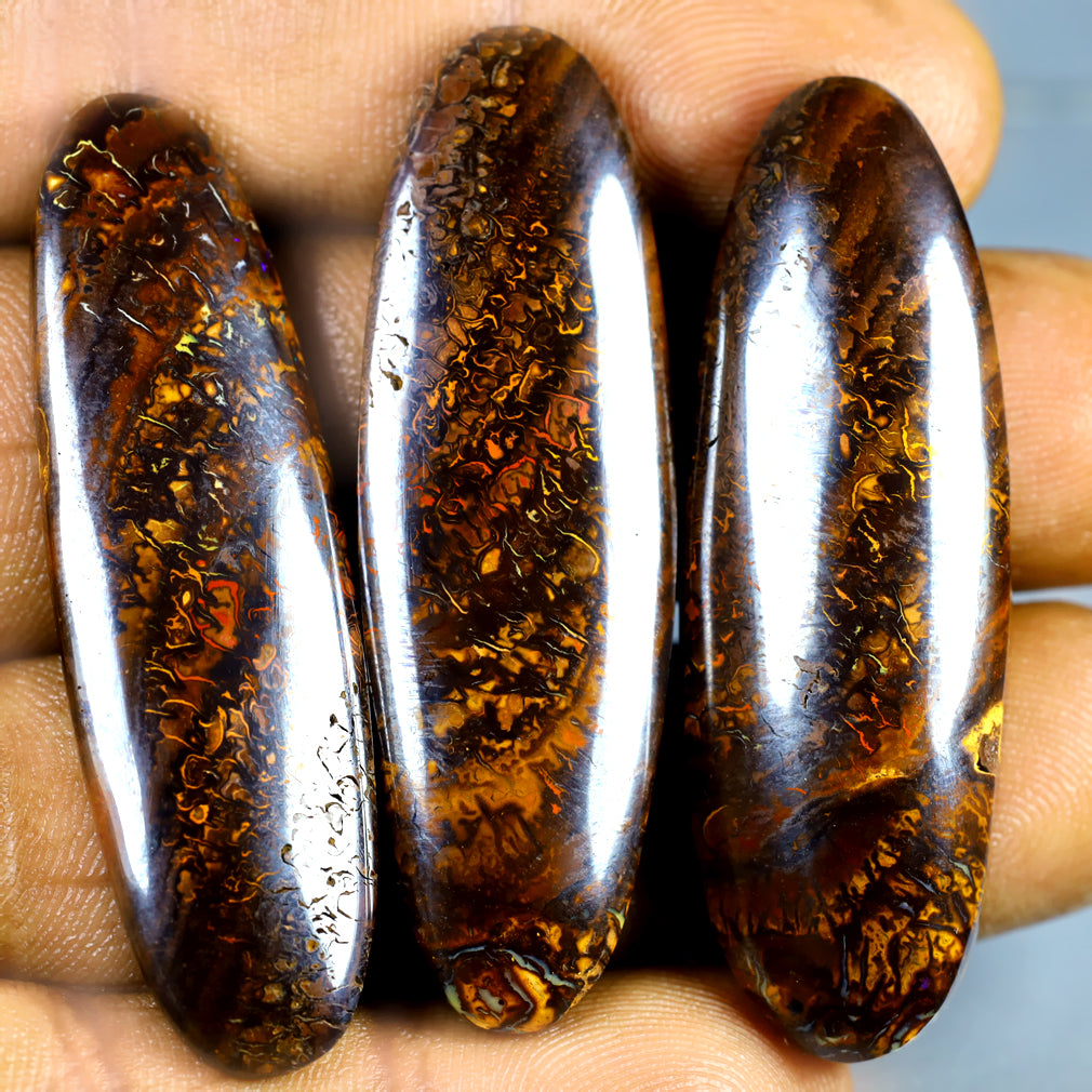 108.48 ct RARE! (3pcs) MATCHING PAIR Cabochon (45.67 x 14.31 mm) Boulder Opal