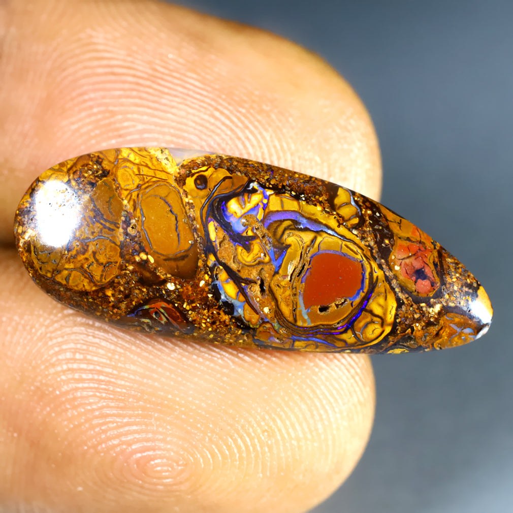 9.04 ct Cabochon (26.97 x 10.57 mm) Multi Color Australian Koroit Boulder Opal