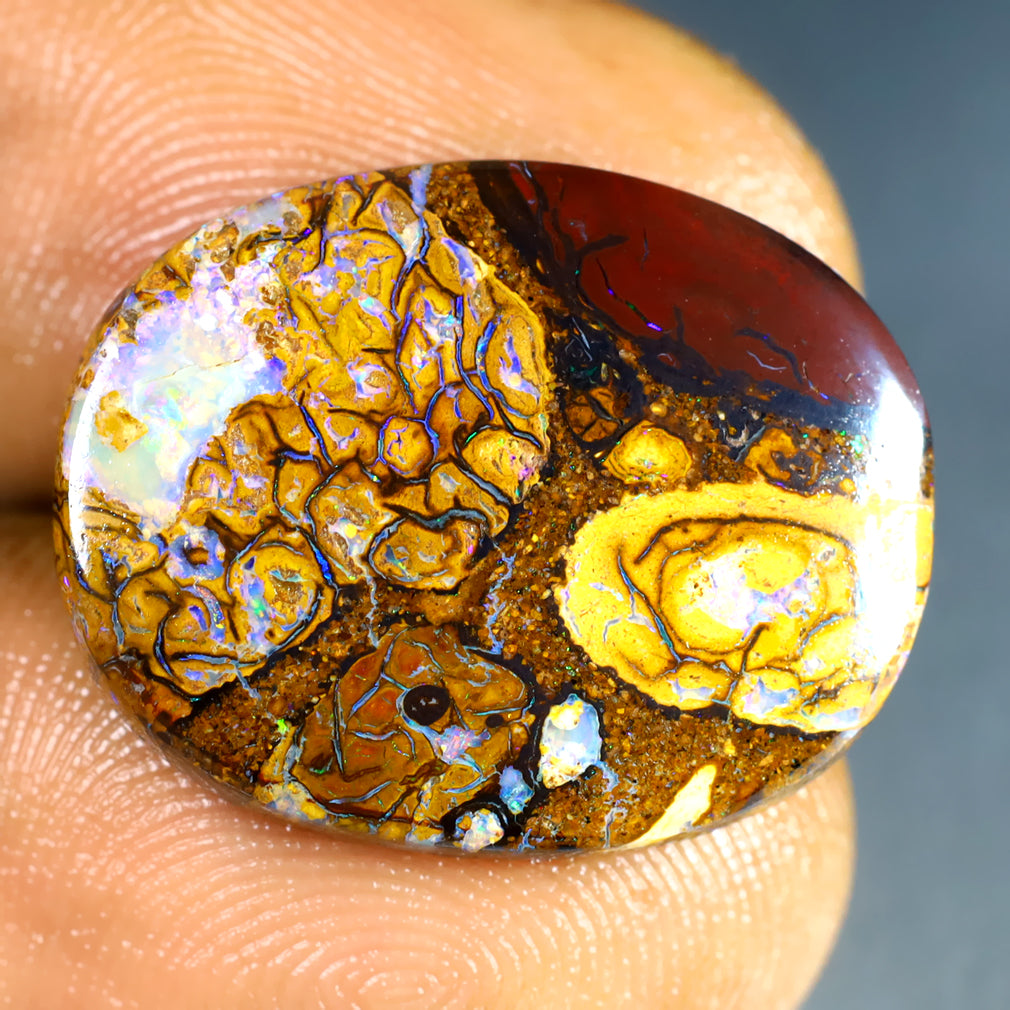 9.49 ct Cabochon (20.92 x 16.58 mm) Multi Color Australian Koroit Boulder Opal