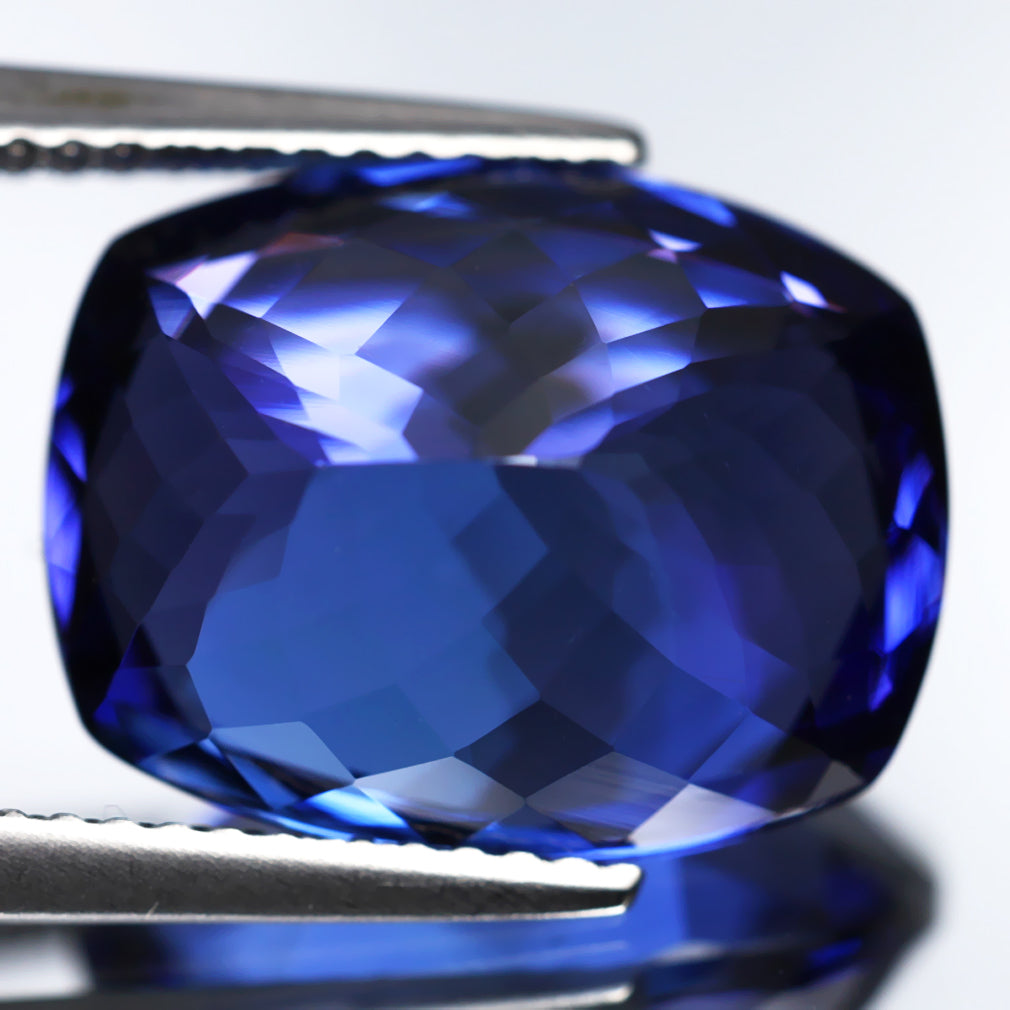GIA Certified 10.10 ct AAAA Cushion (14.54 x 11.40 mm) Natural D'Block Tanzanite
