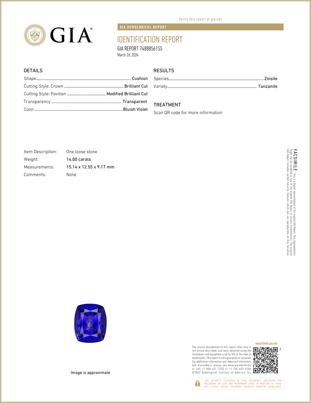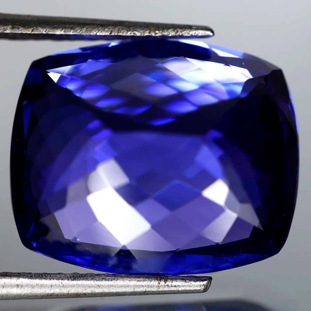 GIA Certified 14.00 ct AAAA Cushion (15.14 x 12.55 mm) Natural D'Block Tanzanite