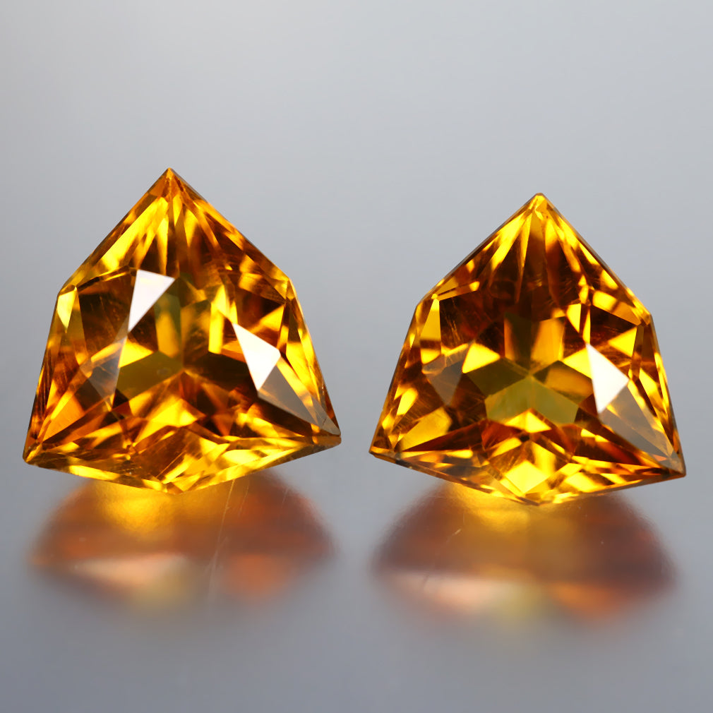 8.38 ct(2pcs) PAIR Trillion(11.35 x 11.03 mm)Natural Citrine Gemstone