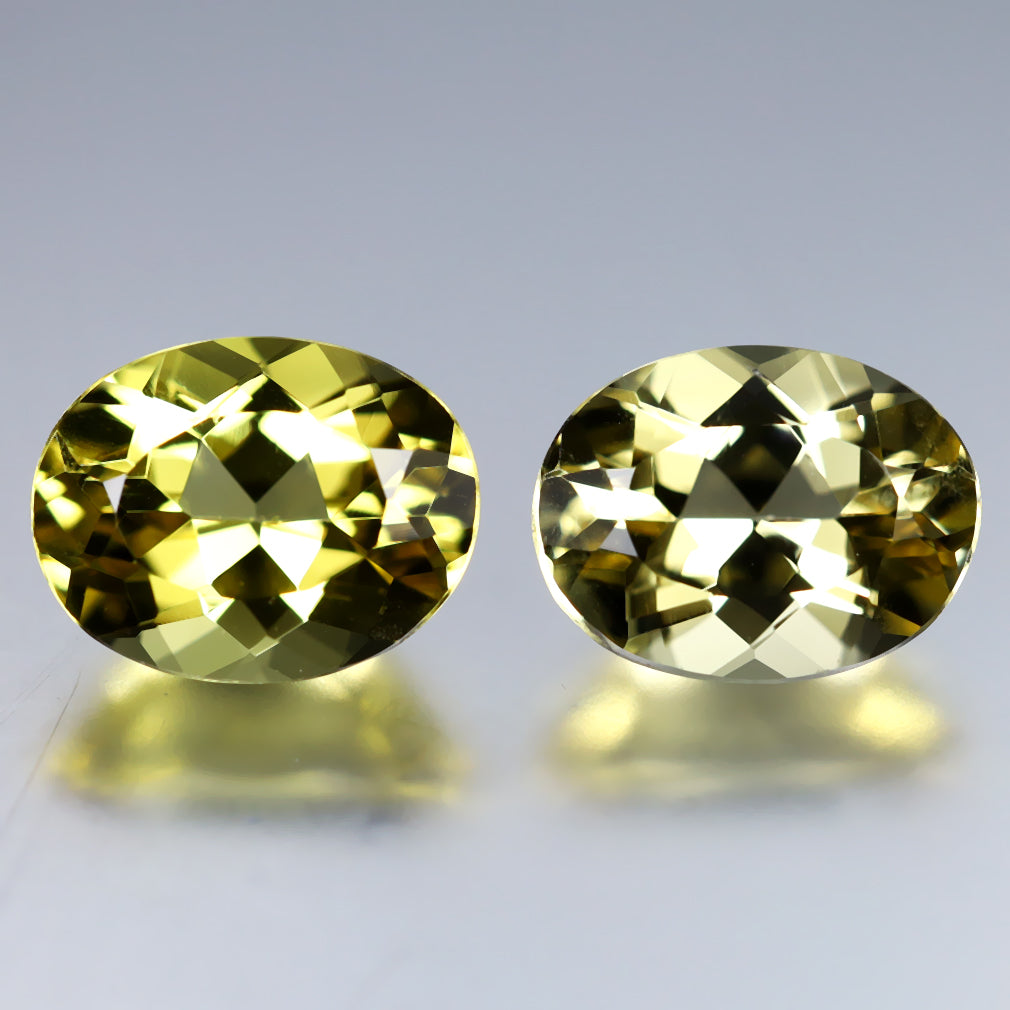 3.47 ct (2pcs) MATCHING PAIR Oval (9.03 x 7.10 mm) Natural Yellow Heliodor Beryl