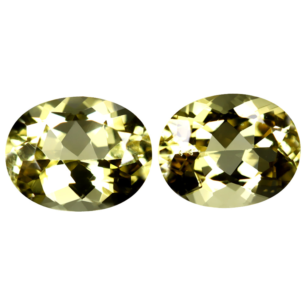 4.98 ct (2pcs) PAIR Oval (10.27 x 8.21 mm) Natural Yellow Heliodor Beryl