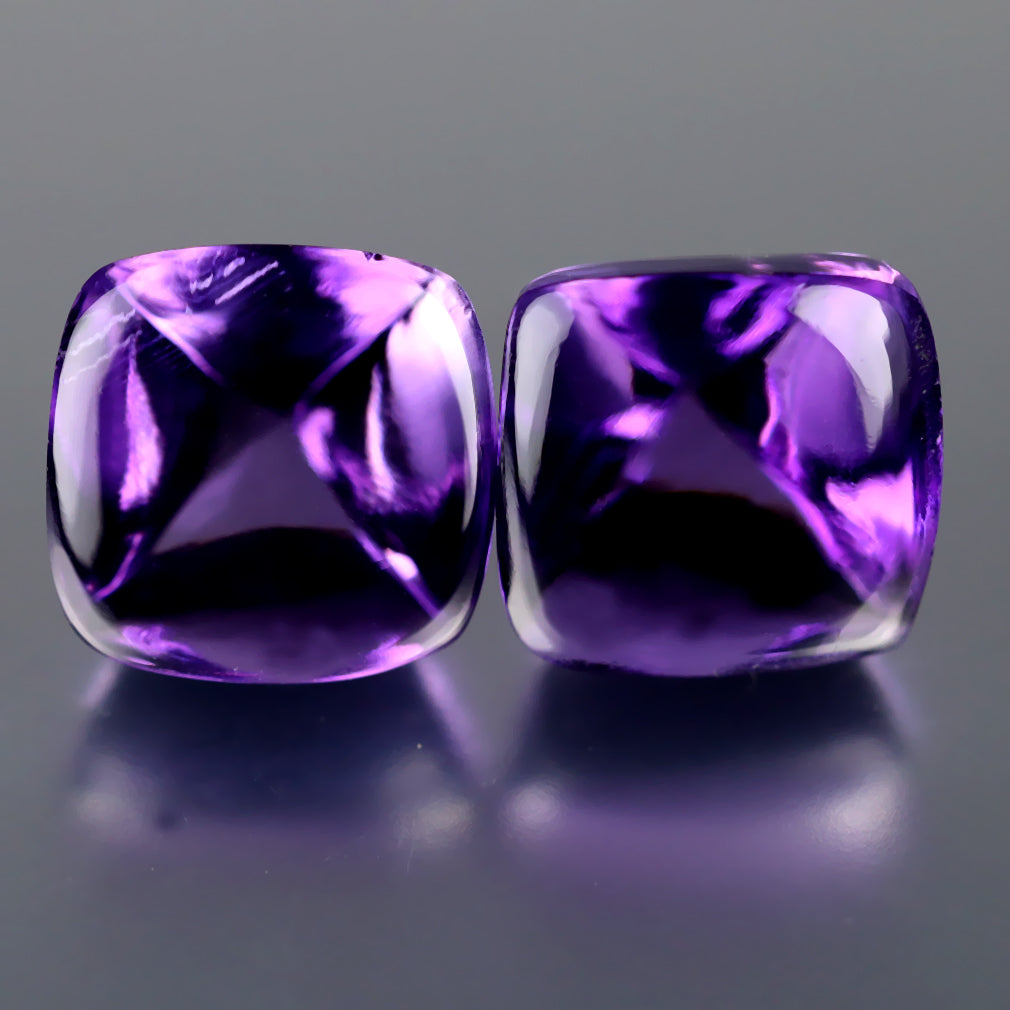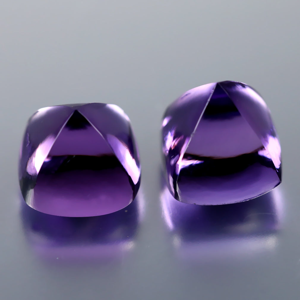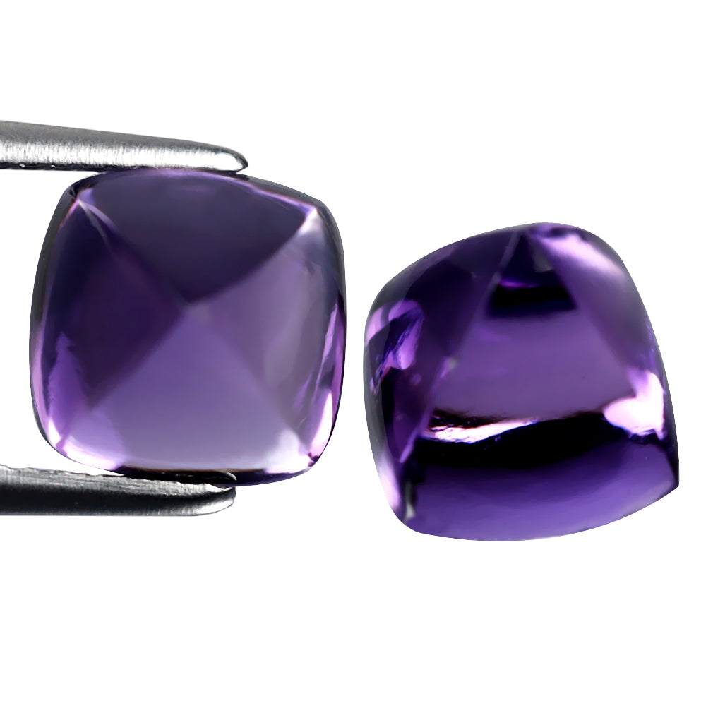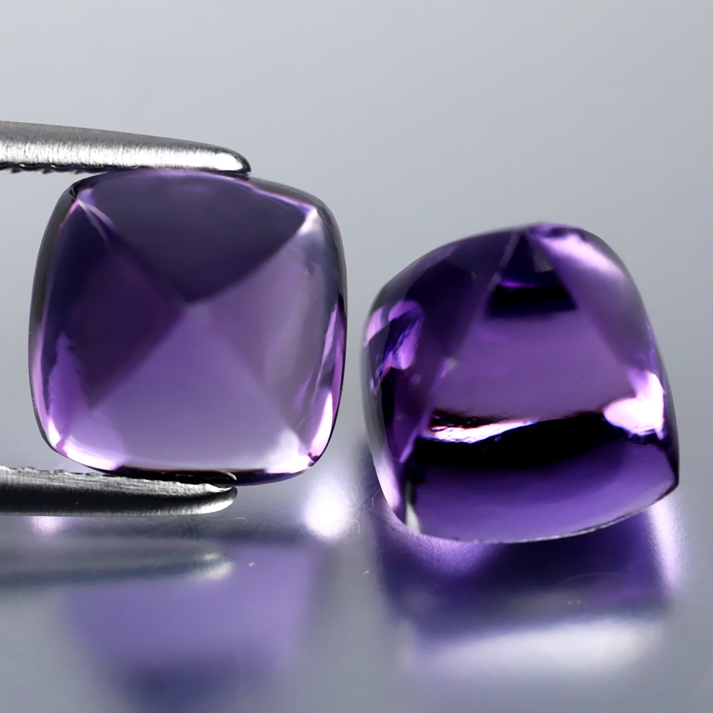 7.26 ct (2pcs) MATCHING PAIR Sugarloaf (8.63 x 8.52 mm) Purple Amethyst