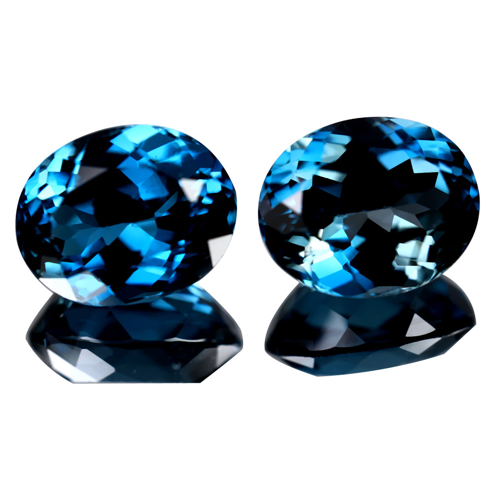 7.80 ct (2pcs) Fair MATCHING PAIR Oval Shape (10.20 x 8.11 mm) London Blue Topaz