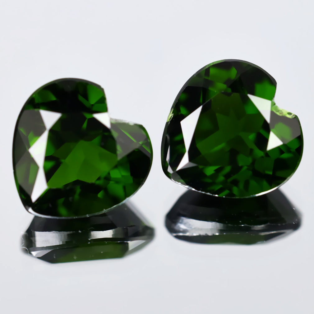 4.31 ct (2pcs) MATCHING PAIR Heart (8.07 x 8.06 mm) Green Chrome Diopside