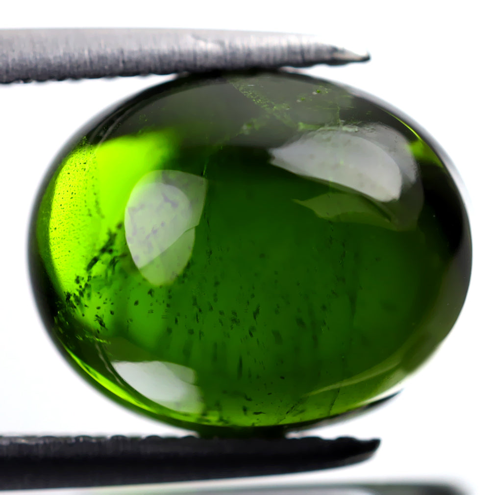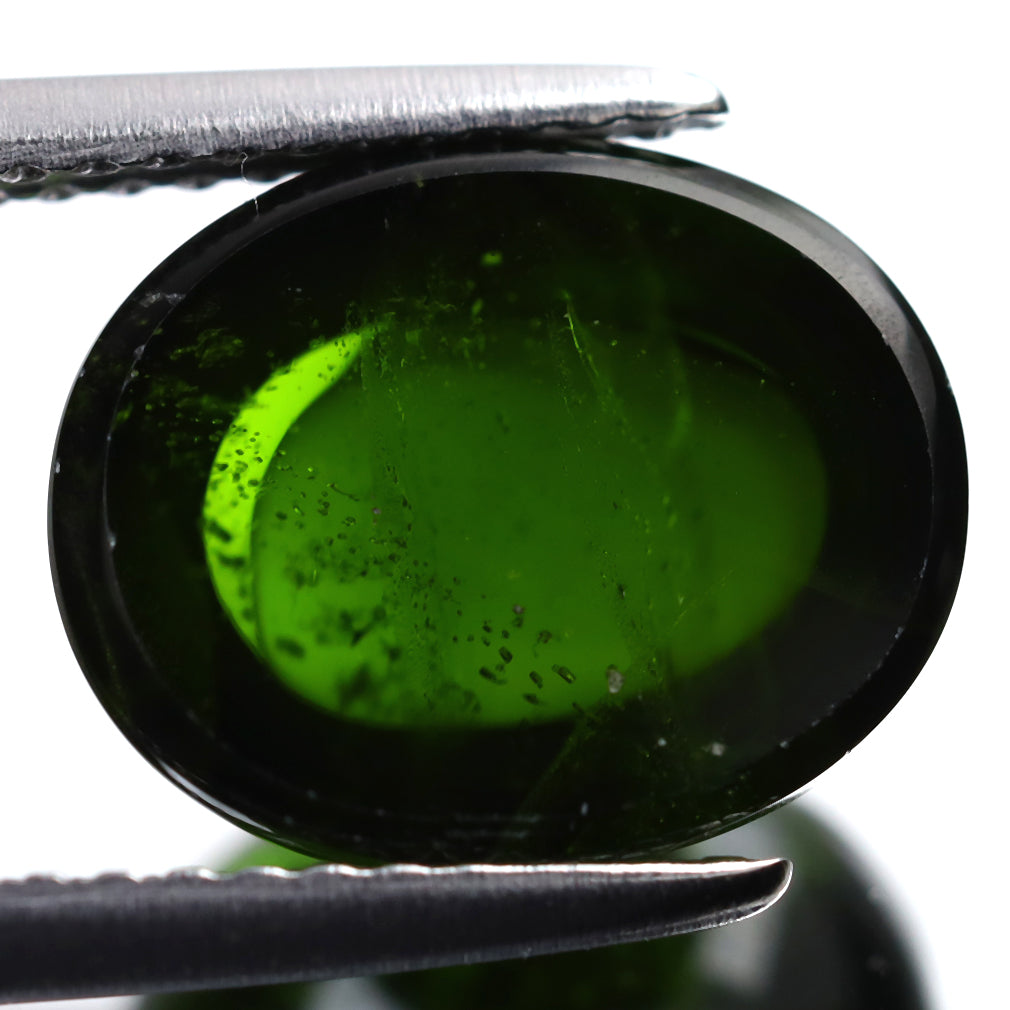 5.03 ct Fair Oval Cabochon Cut (11.14 x 9.07 mm) Un-Heated Green Chrome Diopside