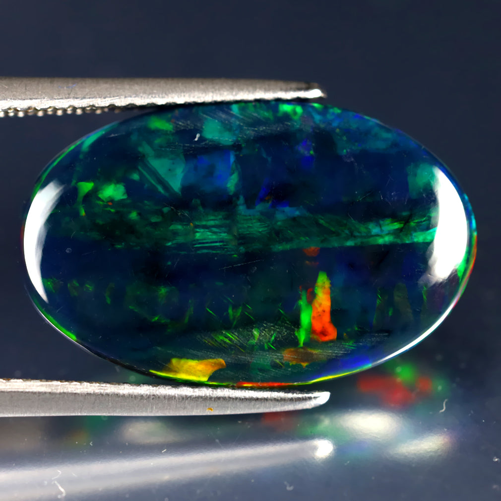 7.11 ct First-class Oval Cabochon(20.03 x 12.68 mm)Flashing Black Opal Gemstone