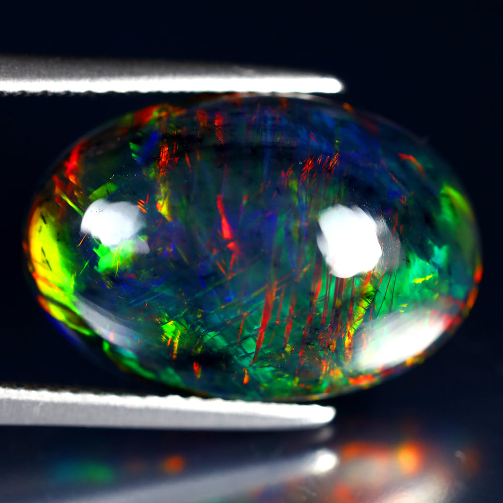 6.96 ct Oval Cabochon(17.82 x 12.06 mm)Ethiopian 360 Degree Flashing Black Opal