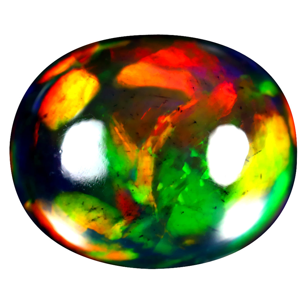 6.94 ct Fair Oval Cabochon(16.12 x 13.43 mm)Ethiopian Flashing Black Opal Stone