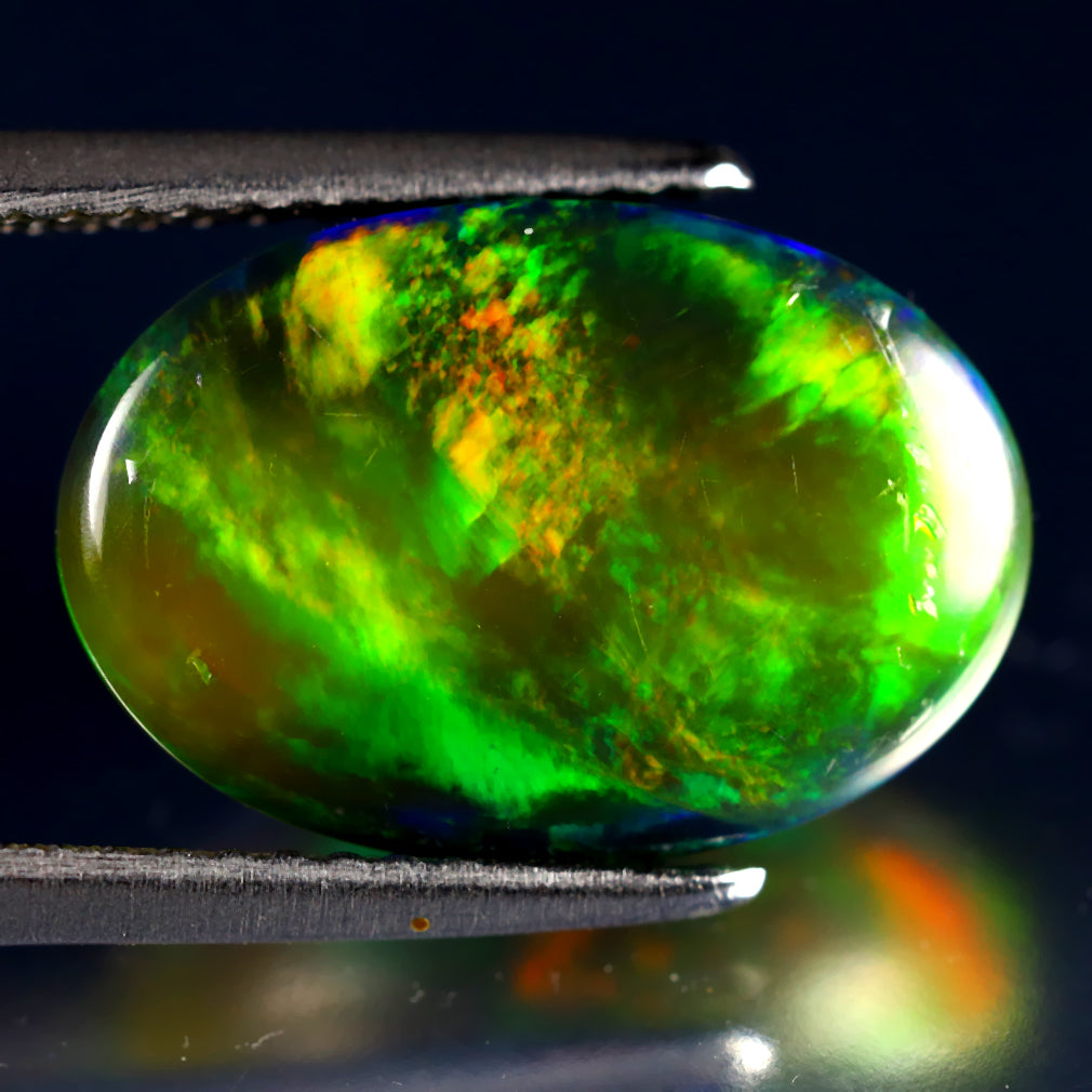 5.32 ct Oval Cabochon(14.72 x 10.05 mm)Ethiopian 360 Degree Flashing Black Opal