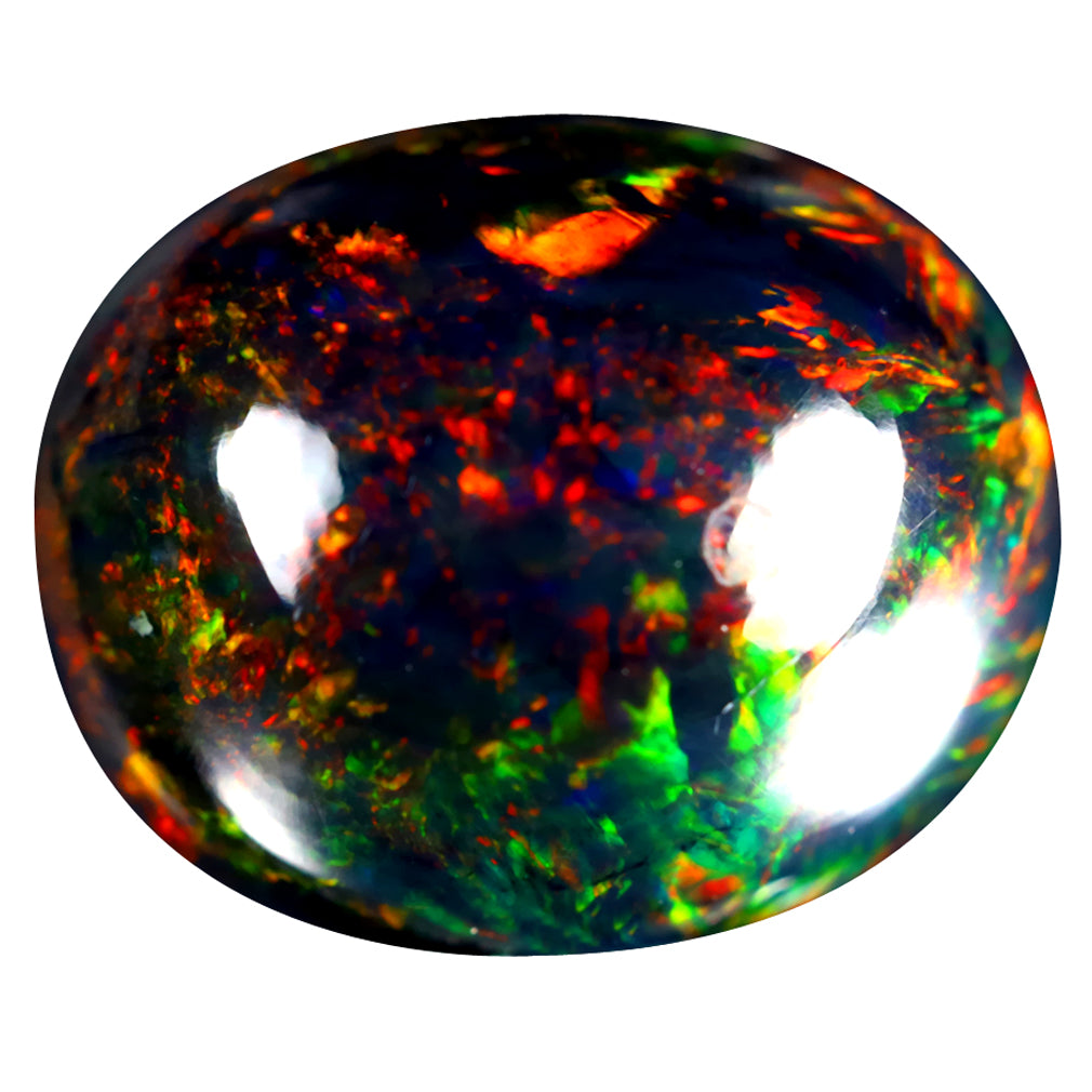 4.94 ct Superb Oval Cabochon (14.18 x 11.86 mm) Ethiopian Flashing Black Opal