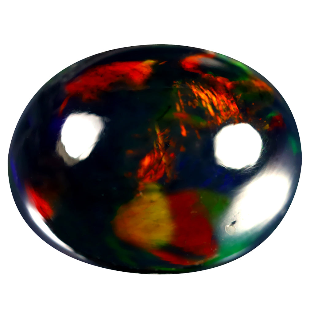 5.29 ct Spectacular Oval Cabochon(14.37 x 11.31 mm)Flashing Black Opal Gemstone