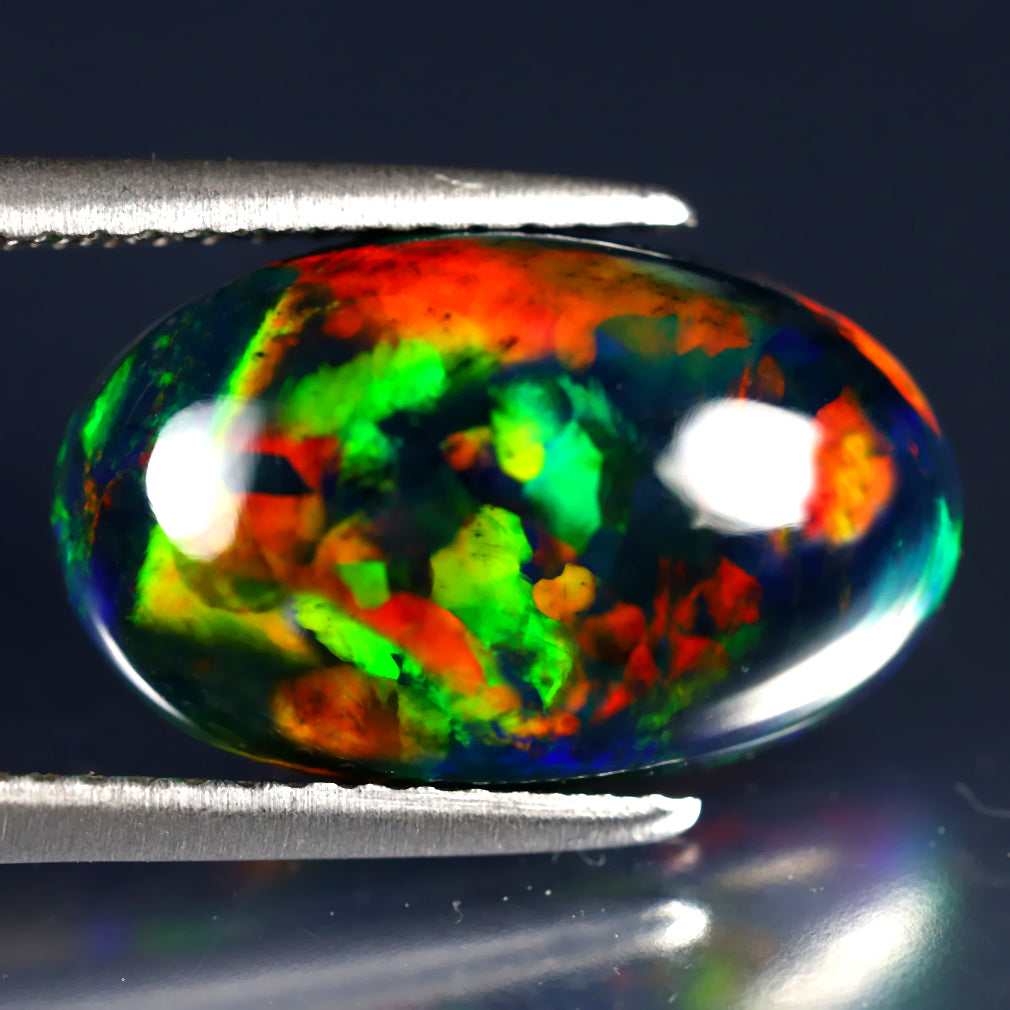 3.91 ct Pretty Oval Cabochon(15.38 x 9.41 mm)Ethiopian Flashing Black Opal Stone