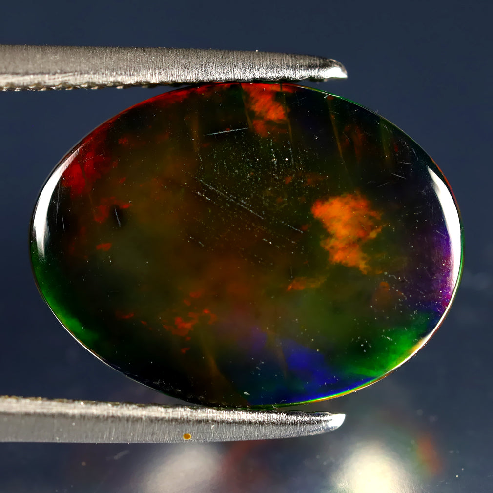 5.42 ct Oval Cabochon(14.36 x 10.77 mm)Ethiopian 360 Degree Flashing Black Opal