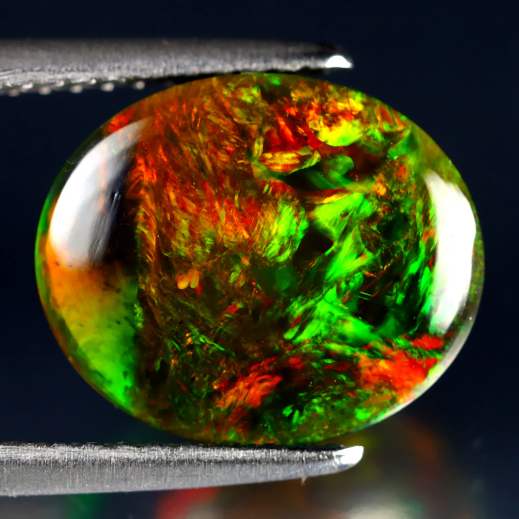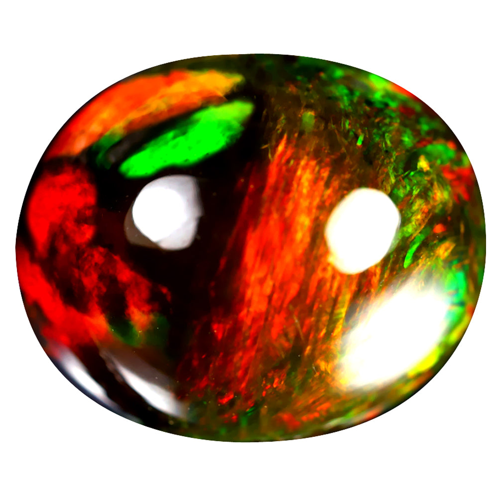 3.45 ct Oval Cabochon(12.01 x 10.02 mm)Ethiopian 360 Degree Flashing Black Opal