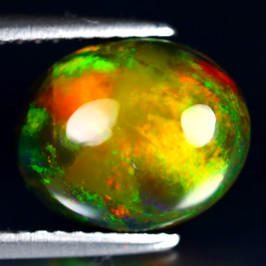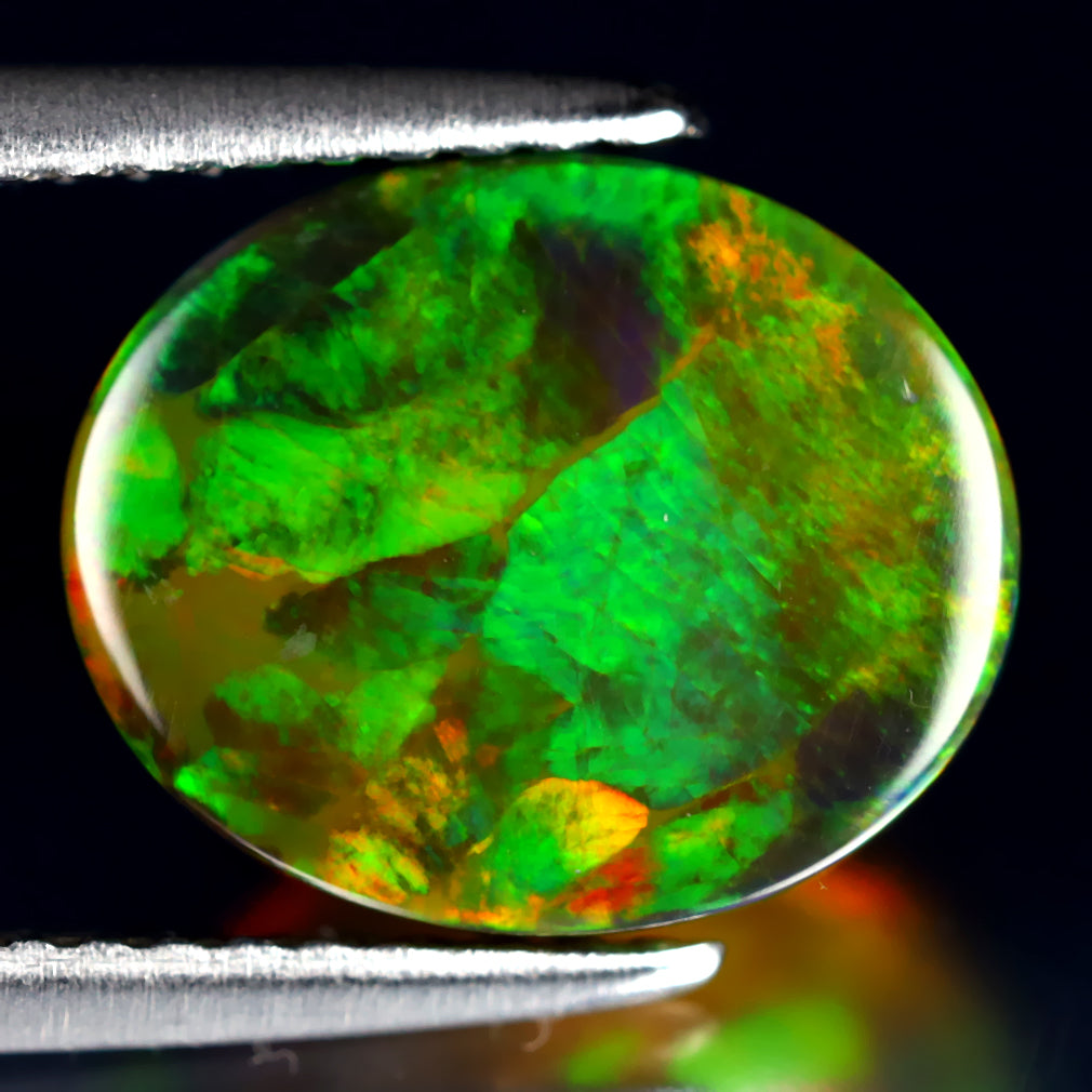 2.74 ct Premium Oval Cabochon (11.10 x 9.07 mm) Ethiopian Flashing Black Opal