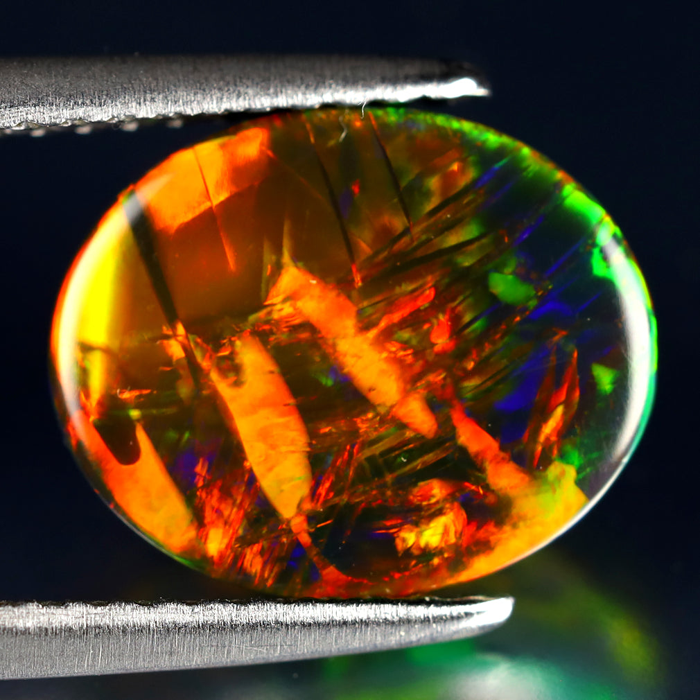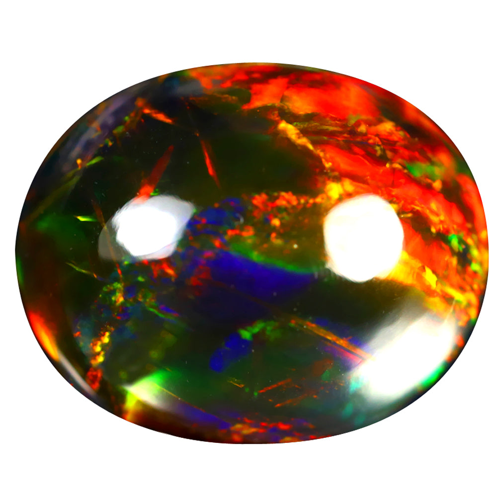 2.19 ct World class Oval Cabochon(11.12 x 9.05 mm)Ethiopian Flashing Black Opal