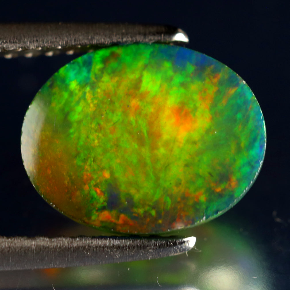 1.74 ct Elegant Oval Cabochon (10.14 x 7.97 mm) Ethiopian Flashing Black Opal