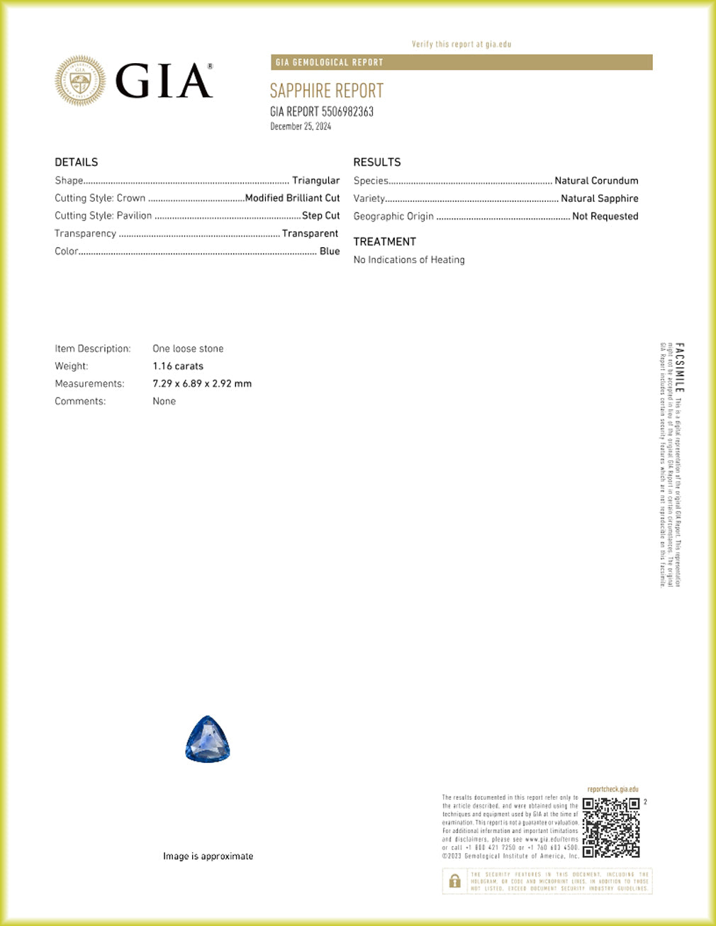 GIA Certified 1.16 ct Phenomenal Triangle(7.29 x 6.89 mm)Unheated Blue Sapphire