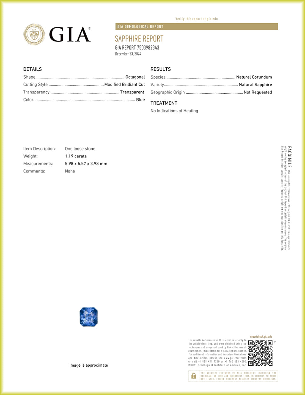 GIA Certified 1.19 ct Terrific Octagon (5.98 x 5.57 mm) Unheated Blue Sapphire