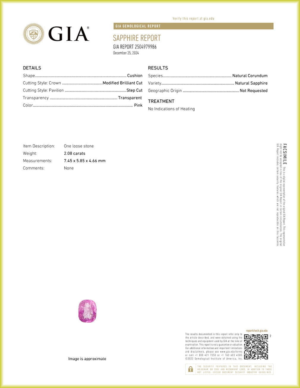 - Weight: 2.08 ct