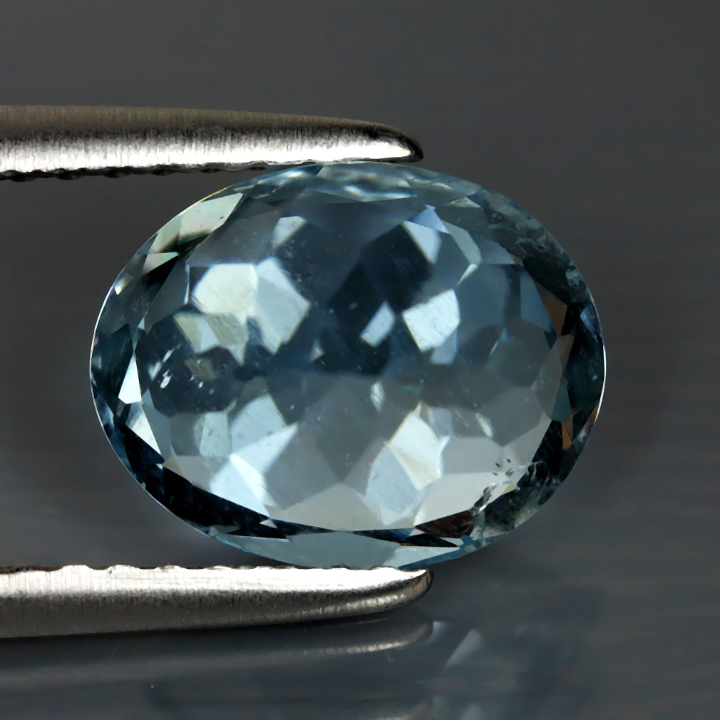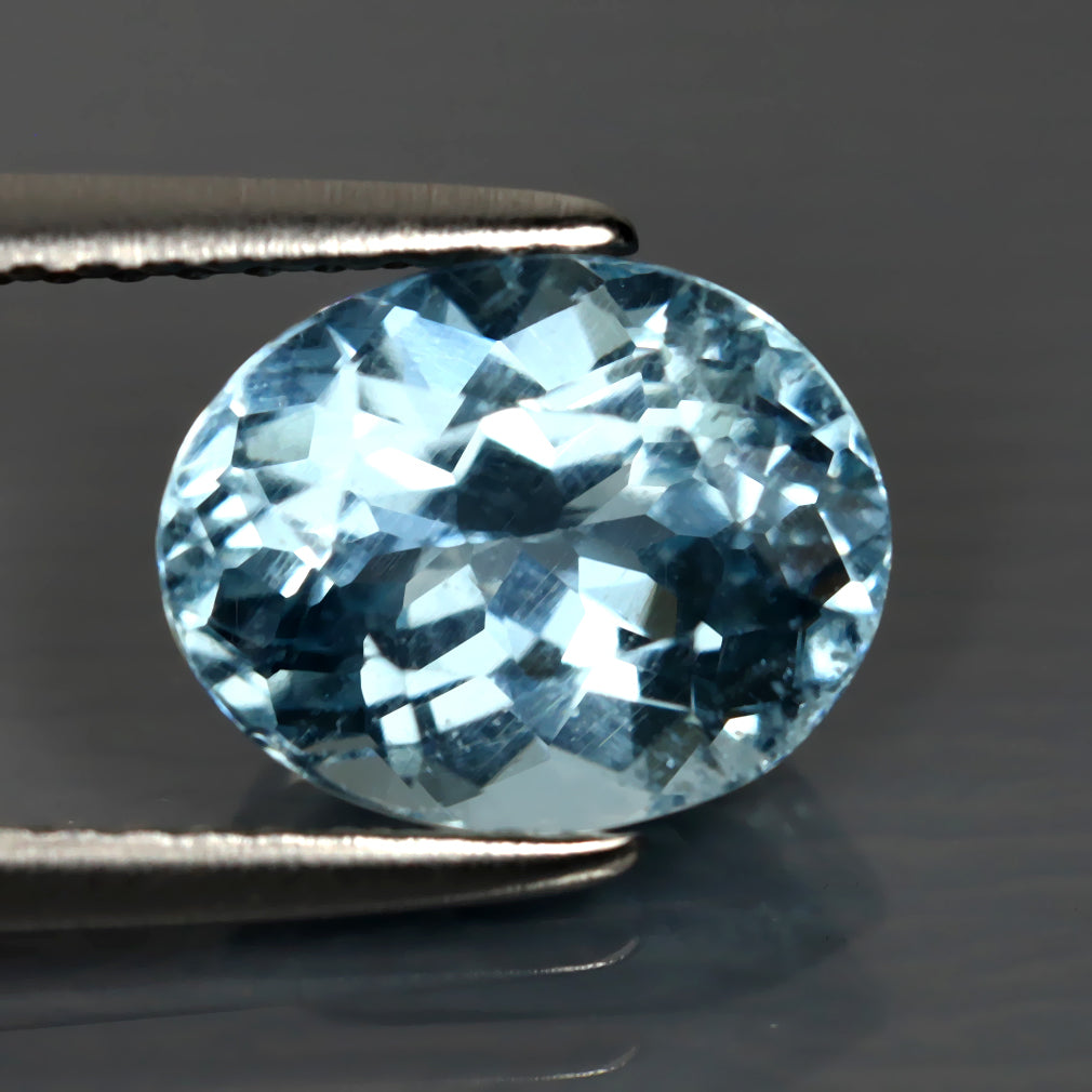 2.22 ct Tremendous Oval Cut (9.25 x 7.43 mm) Brazil Sky Blue Aquamarine Gemstone