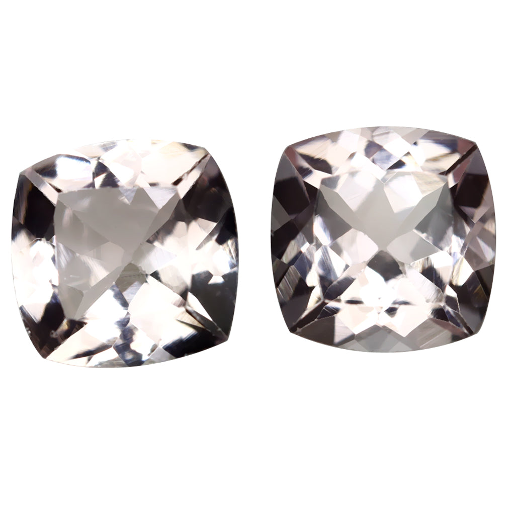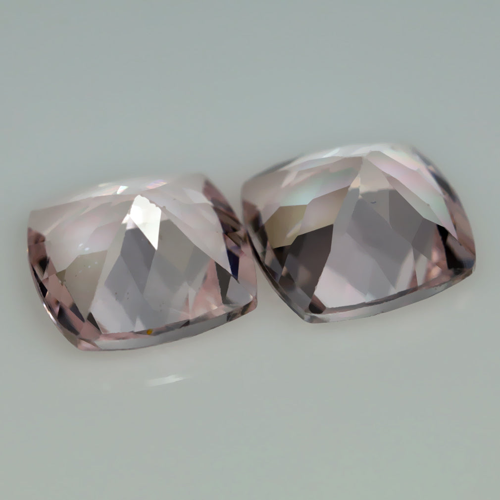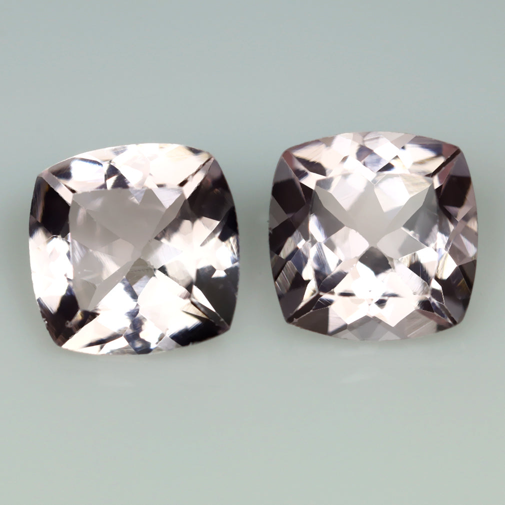 2.61 ct (2pcs) MATCHING PAIR Cushion (7.12 x 7.11 mm) Peach Pink Morganite Stone