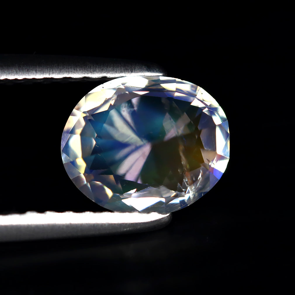 1.18 ct Tremendous Oval Cut (7.78 x 6.34 mm) Unheated Rainbow Moonstone Gemstone
