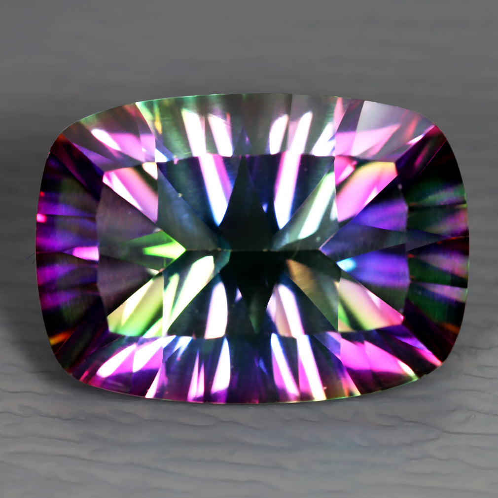 7.60 ct Eye-catching Cushion (14.08 x 10.07 mm) Green Mystic Fire Topaz Gemstone