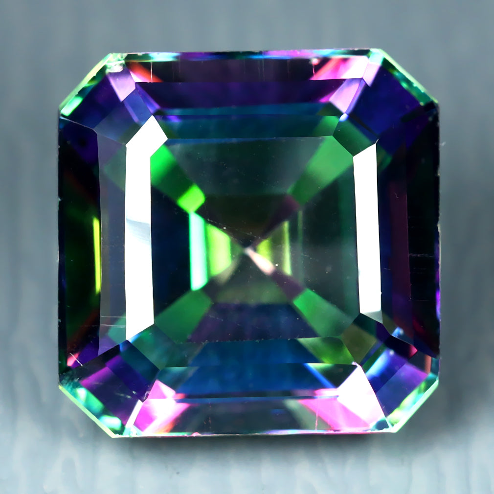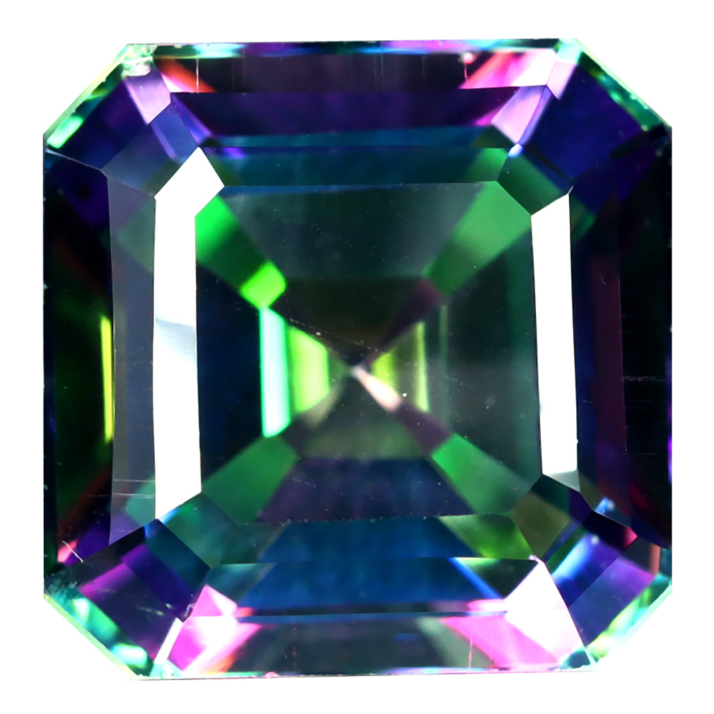 4.53 ct Princess Shape (8.90 x 8.89 mm) Green Mystic Fire Topaz Genuine Gemstone