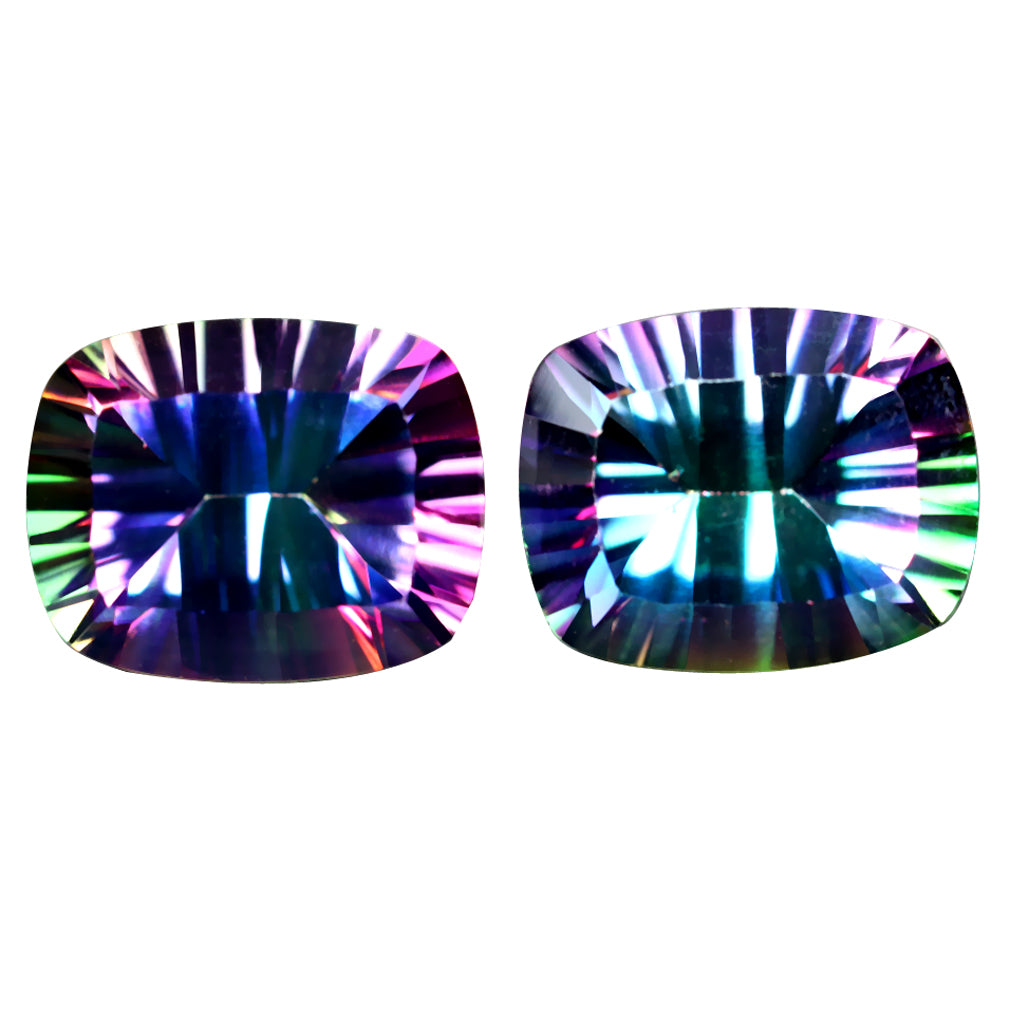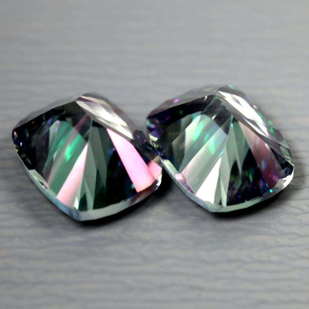 7.44 ct(2pcs)MATCHING PAIR Cushion(10.04 x 8.09 mm)Mystic Fire Topaz Gemstone