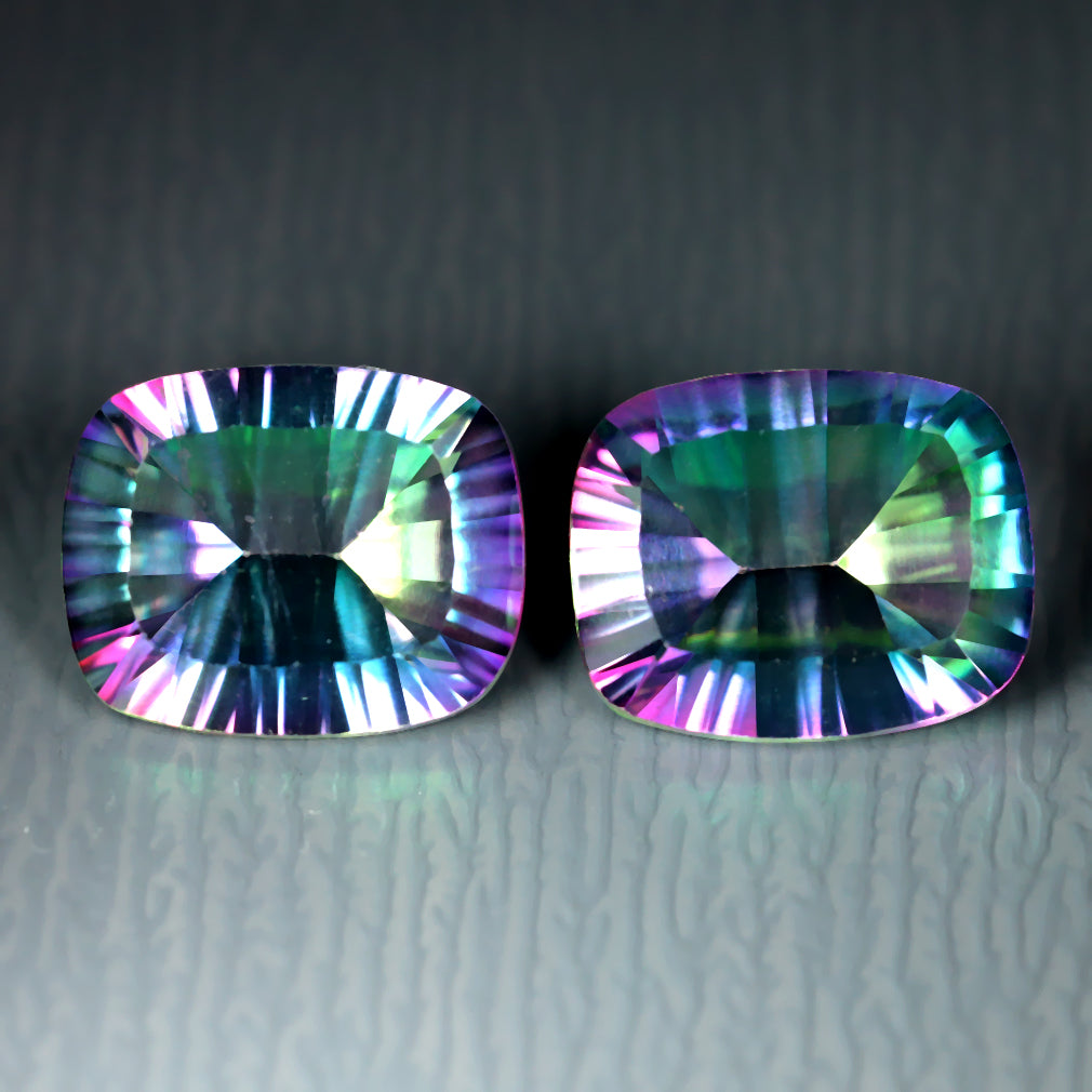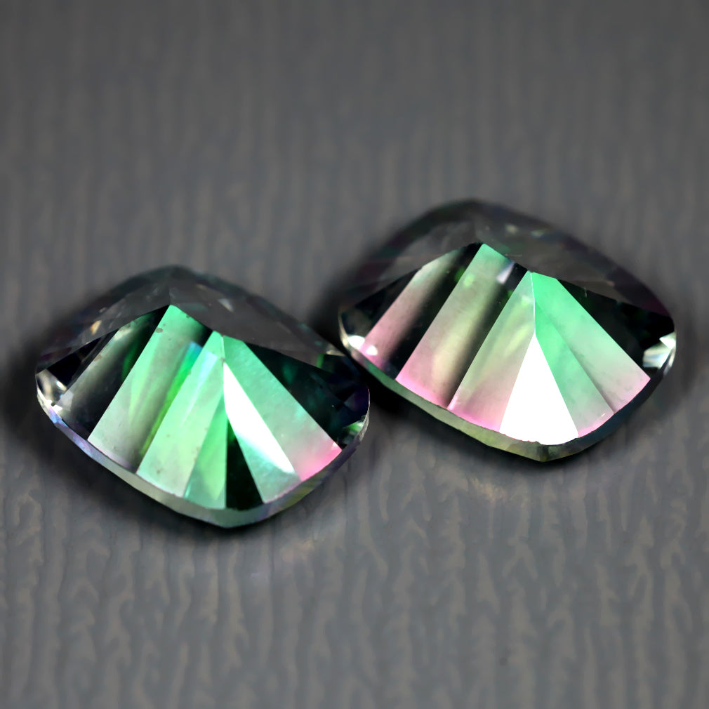 6.81 ct(2pcs)MATCHING PAIR Cushion(10.13 x 8.09 mm)Mystic Fire Topaz Gemstone