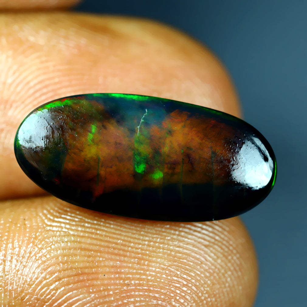5.24 ct Awe-inspiring Oval Cabochon(19.52 x 9.11 mm)Flashing Black Opal Gemstone