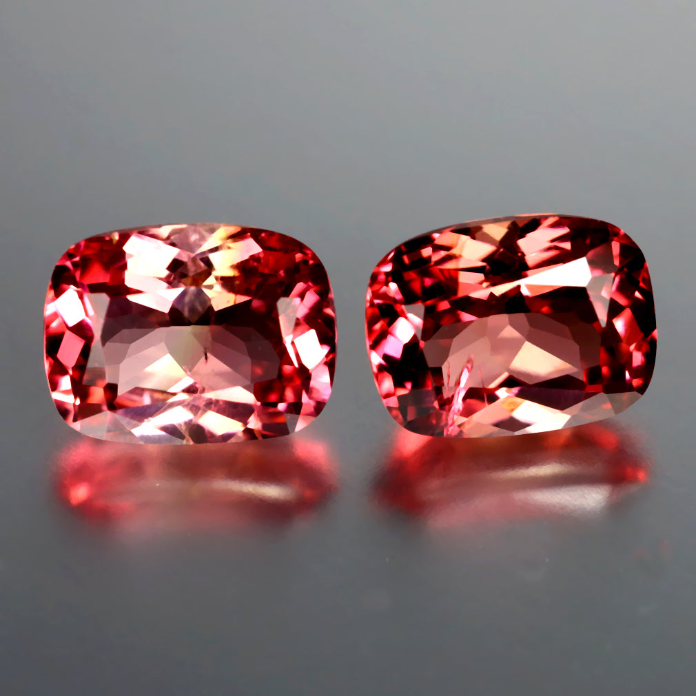 3.02 ct (2pcs) Phenomenal MATCHING PAIR Cushion (8.16 x 6.17 mm) Pink Tourmaline