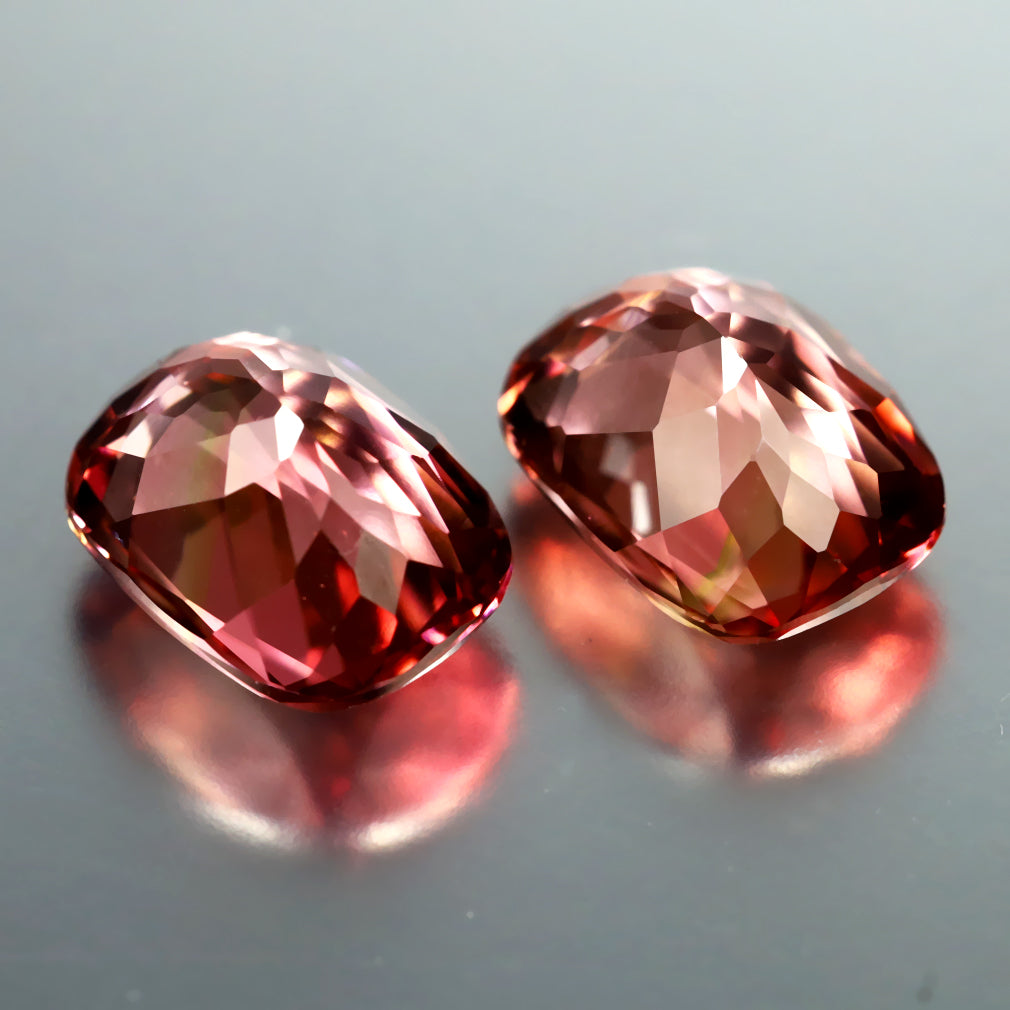 3.00 ct(2pcs)Eye-popping MATCHING PAIR Cushion(8.12 x 6.15 mm)Pink Tourmaline