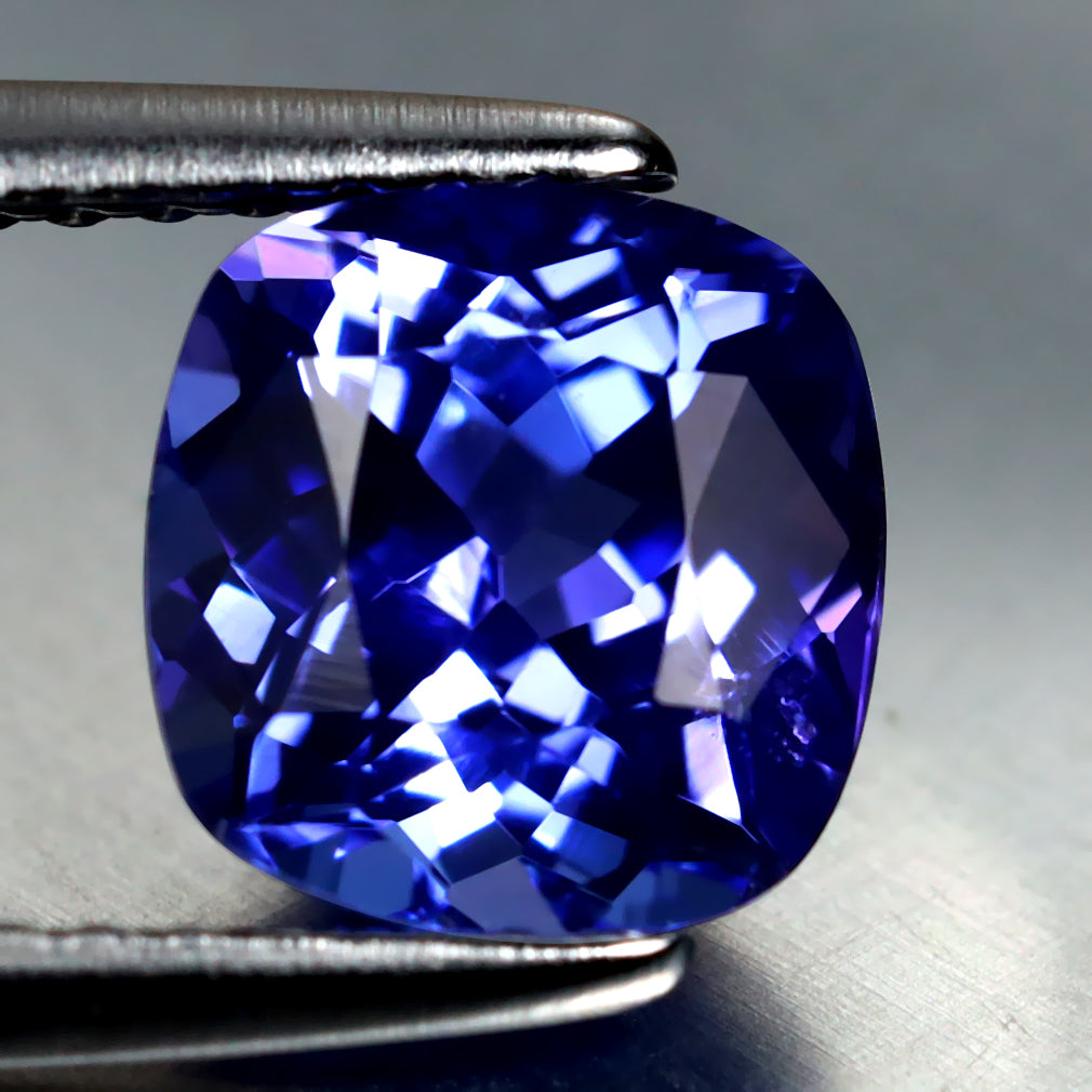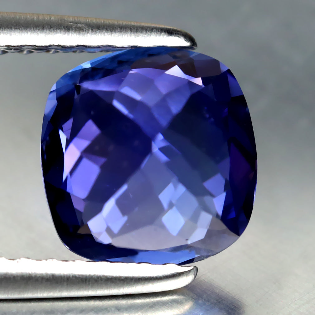 1.71 ct AAAA Pretty Cushion (7.19 x 6.98 mm) Purplish Blue Tanzanite Gemstone