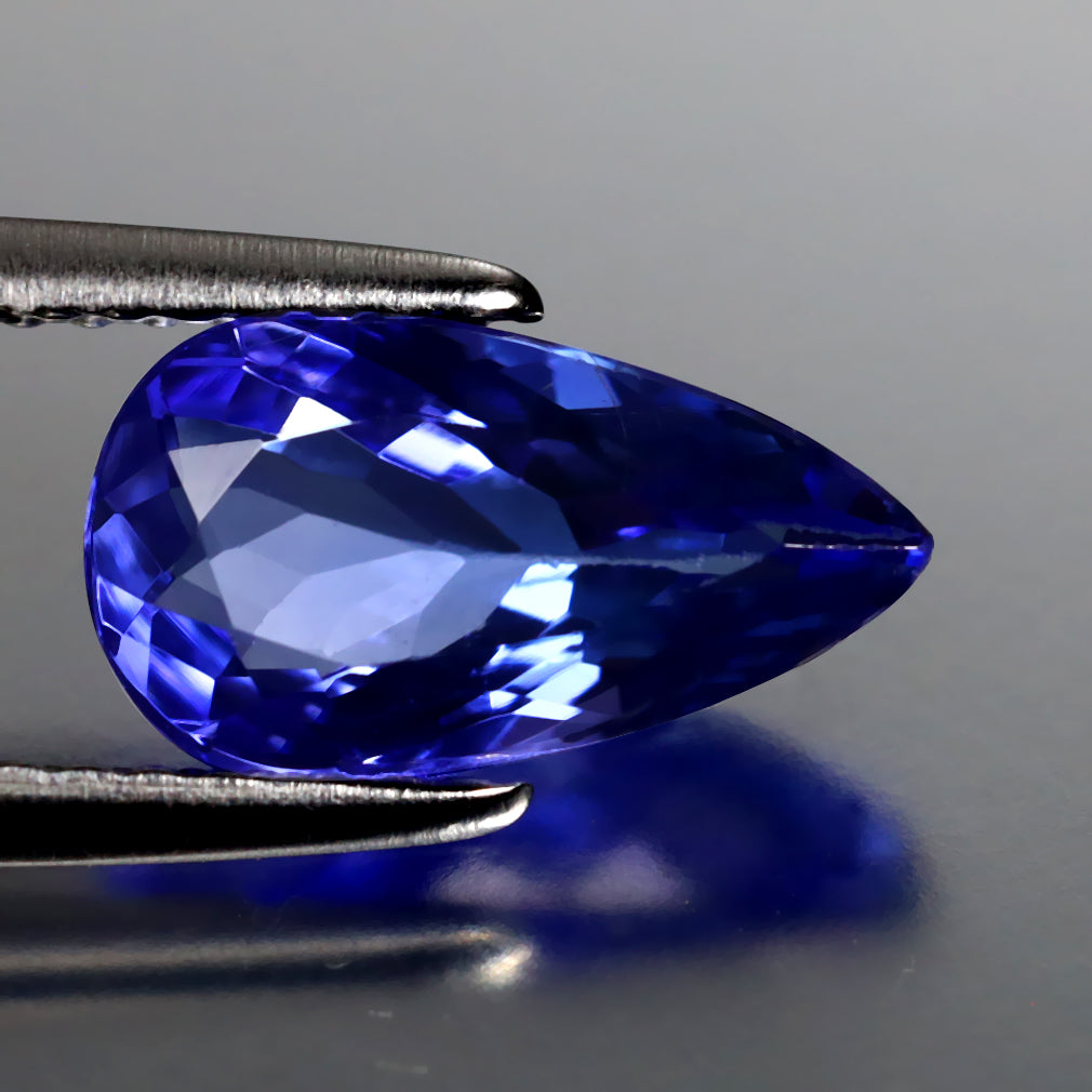 1.70 ct AAAA Superb Pear Cut (10.57 x 5.88 mm) Purplish Blue Tanzanite Gemstone
