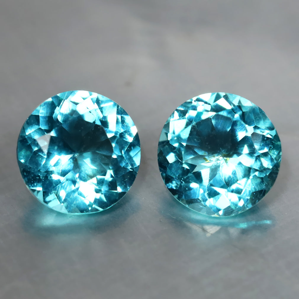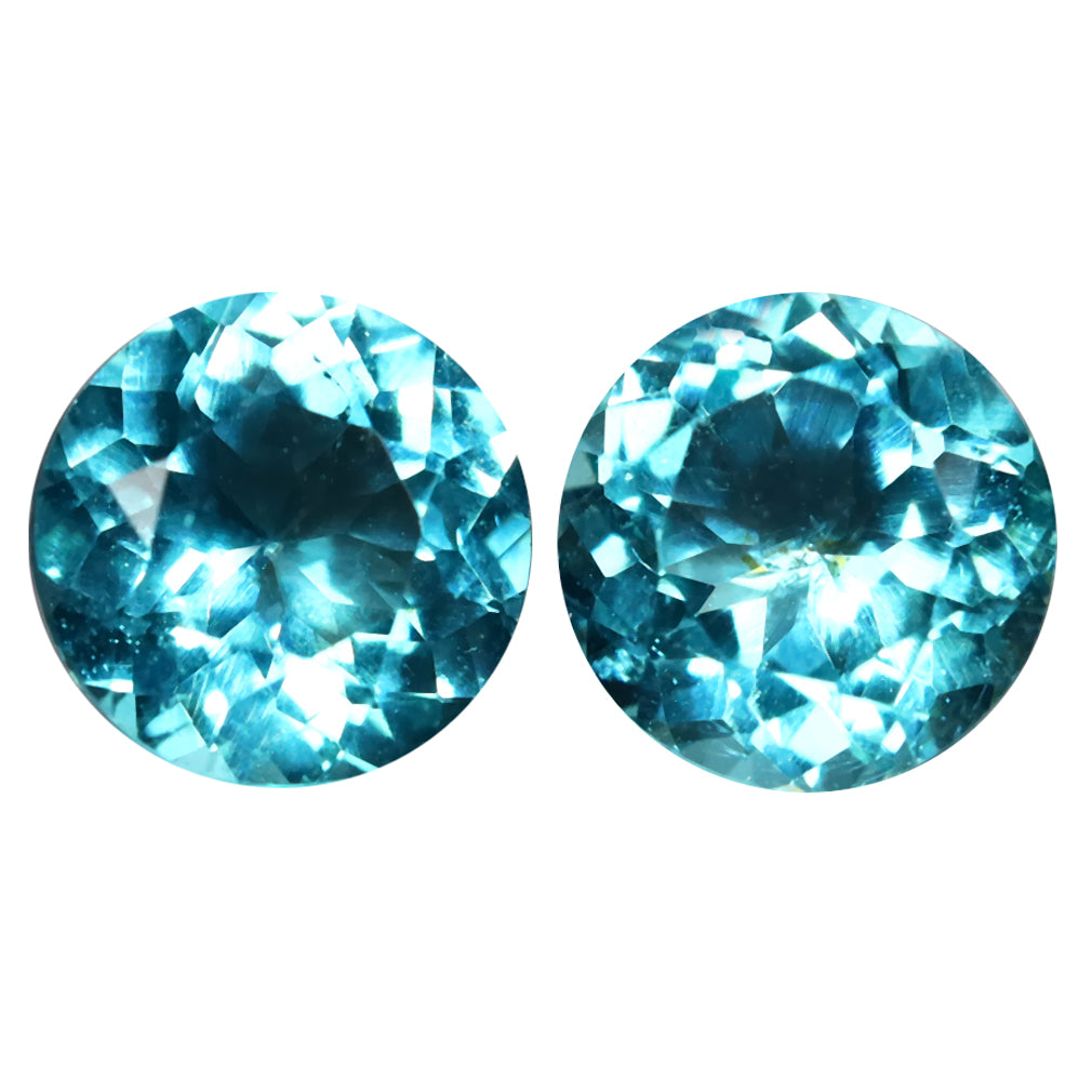 1.79 ct (2pcs) MATCHING PAIR 6 mm Round Natraul Brazil Apatite Gemstone